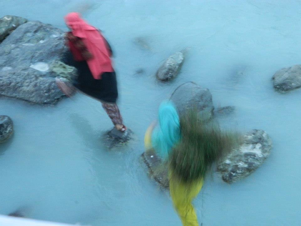 I happened to notice few kashmiri women on my recent trip to Kashmir ..they were just going back home after spending their day in woods, gathering dried wood and fodder for the cattle back home, on their way back home, they have to pass through various rough patches, like down here, they had to cross this really wide and wild river "Lidder", it has huge rocks and wild currents of water flow through it...but these tribal women make their way out of it, they are not bothered by its wildness or flow...they are just fighting a good fight. it may not seem to be significant but I see things through a different prospective, for me every thing is a lesson, this world is a real place to learn every thing you need to learn that will make you a better person.