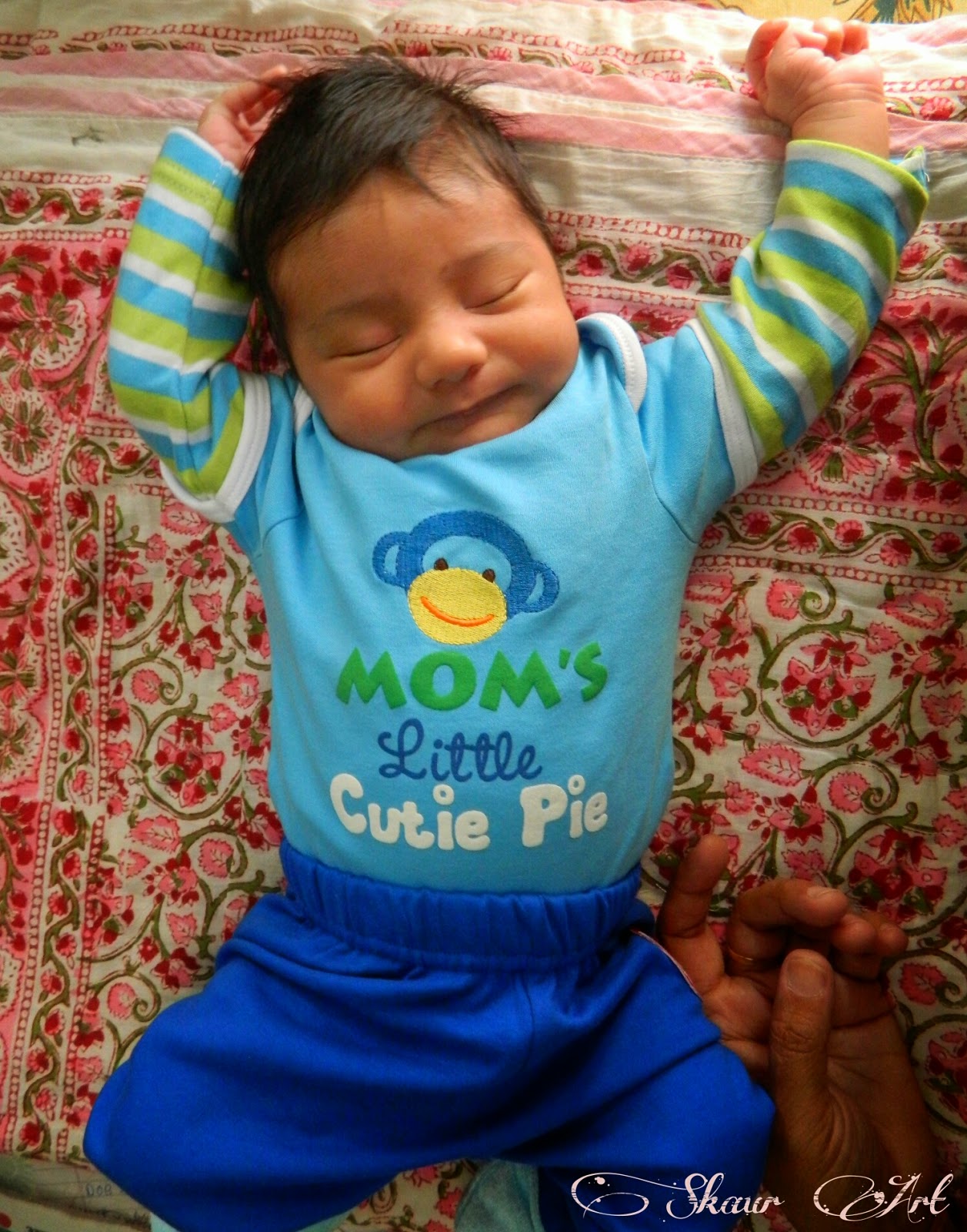 It was a gloomy day today, we had a heavy down pour here....I couldn't take you out to click some pics in natural light....this one was clicked in our bedroom while you were sleeping...I am fed up of this winter chill now..., its end of April but still no sign of summer here..,,